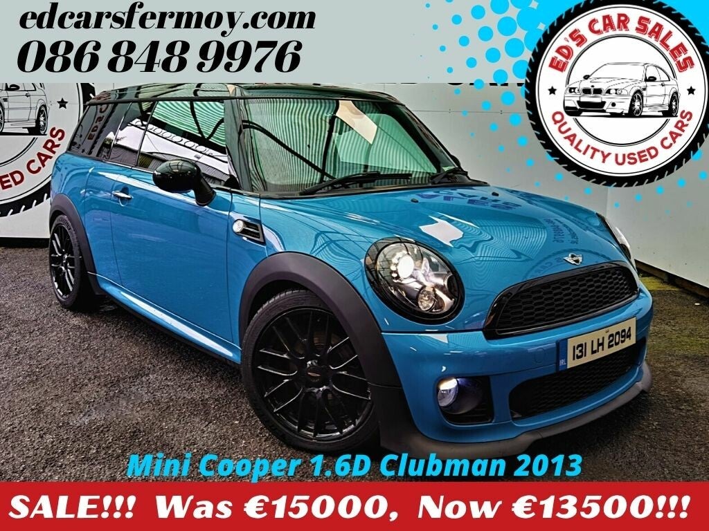 Kite Blue Metallic. Straight Sale ( No Trade in) PRICE €15000 TRADE IN PRICE €15,500 *1.6 Diesel *2013(131) *Front wheel drive. *6 Speed Manual. *70,400 Miles. *2 Keys. *Full vehicle history check (Cartell). *12 Months Warranty *Annual Roax TAX €190 *NCT 10-2021 *Full Service History. *Fully Serviced. *Extras added when ordered new!! -Hi-Fi Syetem Harman Kardon. -MINI LA Alloys Cross Spoke Challange. -John Cooper Works Leather Steering Wheel. -Rear Aerodynamic Spoiler -Chrome Line Interior. -Roof And Mirrors Shrouds Black. -JCW Aerodynamic Kit. -Black Headlights. -Glass Roof / Electric. -Sport Seats. -Extended Decor Accessories. -Interior Surface Piano Black. -Sport Butto. -Headlight Cleaning System. -Xenon Headlights. -Lights Package. -Extended Mobile Phone Prep. Bluetooth. -Music Interface. -Mini Connected. -Mini NAV. -White Direction Indicator Lights. -John Cooper Works Chili Package. -Ambient lighting (Blue) -Climate control. -Sat nav (Updated maps) -Lighted Door Handles Come Home/Leaving . -Parking Sensors Rear -Rain Sensors. -Immobiliser. -Anti-theft Alarm. -Central Locking. -Multifunction Steering Wheel. -Menu Navigation. -Voice Command. -Front Heated Seats. -Armrest Front -Sport Suspension.